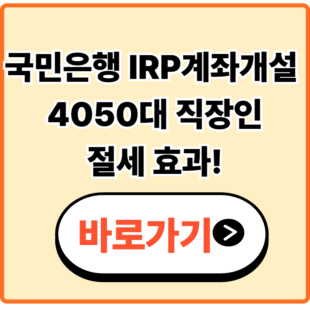 연말정산 시즌이 다가오면 40·50대 직장인들 사이에서 가장 많이 검색되는 키워드 중 하나가 바로 국민은행 IRP 계좌개설입니다. 이미 연말정산을 여러 번 경험한 직장인일수록 “더 돌려받을 수 있는 방법은 없을까”, “지금이라도 준비하면 절세 효과가 있을까”라는 고민을 하게 됩니다. 국민은행 IRP 계좌개설 가능 여부에 대한 공식 내용은 아래의 링크를 통해 확인하실 수 있습니다. 국민은행 irp 계좌개설 가능 여부 국민은행 IRP 계좌개설은 단순히 노후 대비를 위한 금융상품이 아니라, 현재의 세금 부담을 합법적으로 낮출 수 있는 대표적인 절세 수단으로 활용됩니다. 특히 국민은행을 주거래 은행으로 이용하는 40·50대 직장인이라면 관리 편의성과 안정성을 동시에 고려할 수 있다는 점에서 더욱 현실적인 선..