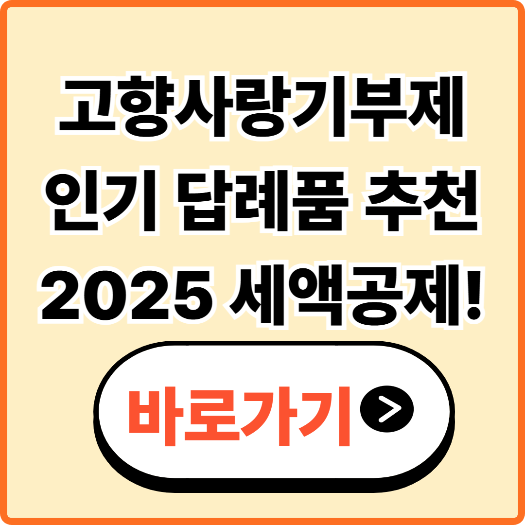 고향사랑기부제는 지역 활성화를 위해 도입된 제도로, 주민등록지 외 지역에 기부하면 세액공제와 함께 다양한 답례품을 받을 수 있습니다. 특히 고향사랑기부제 답례품 추천 리스트에 포함되는 지역 특산품과 체험 상품은 만족도가 높아 매년 관심이 높아지고 있습니다. 고향사랑기부제 답례품 추천을 통해 많은 사람들이 원하는 지역에 기부하실 수 있으며, 기부액에 따라 실속 있는 보상을 받을 수 있다는 점이 장점이니 아래의 '바로가기' 버튼을 통해 빠르게 2025 공식 상품을 확인해보시기 바랍니다. 고향사랑기부제 답례품 2025 바로가기 기부 절차도 복잡하지 않아 초보자도 쉽게 참여할 수 있고, 세액공제 구조 덕분에 부담 없이 고향사랑기부제 답례품 추천 혜택을 활용할 수 있습니다. 이번 글에서는 고향사랑기부제 답례품..